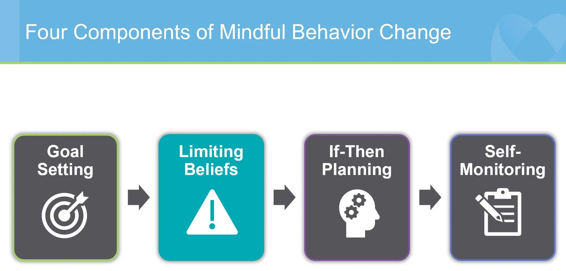 Mindful habit formation involves four components, as shown in the following graphic. This blog focuses on one of the four components: goal setting. You may want to review previous blogs to put this information into perspective. Click here to read Part 1 and Part 2. Future blogs will include the other three components of Mindful Behavior Change.